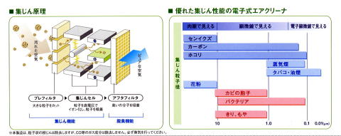 空気中の花粉やほこりはもちろん、タバコの煙など0.01μの微粒子までも逃しません